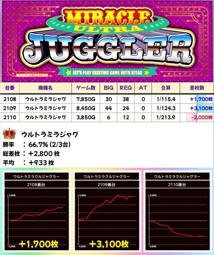 【1/2系濃厚】ウルトラミラジャグ(2/3台+)→平均+933枚