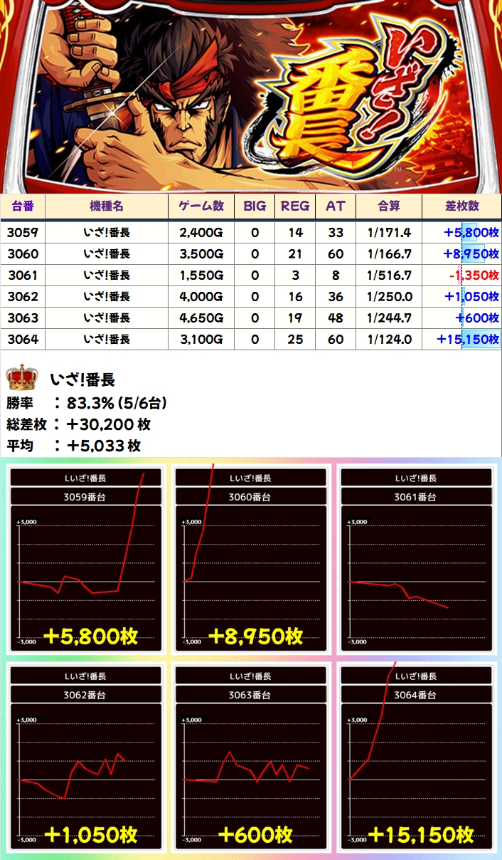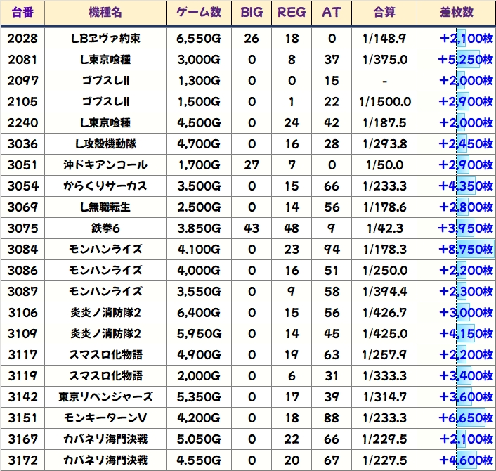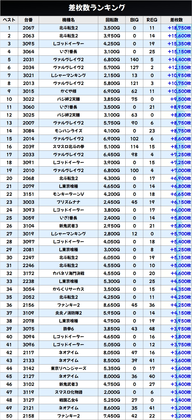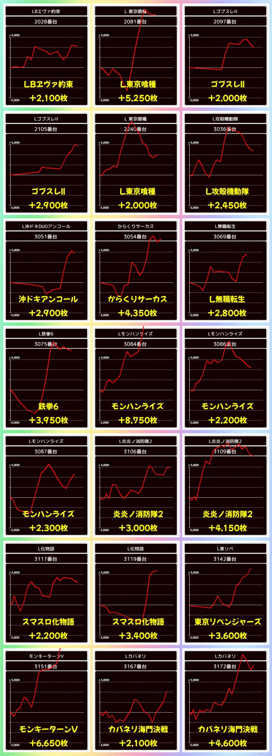 上記の機種からは万枚オーバーが続出しており、ゴッドイーターといざ!番長からは+15000枚overの超爆出し台が飛び出していましたよ!