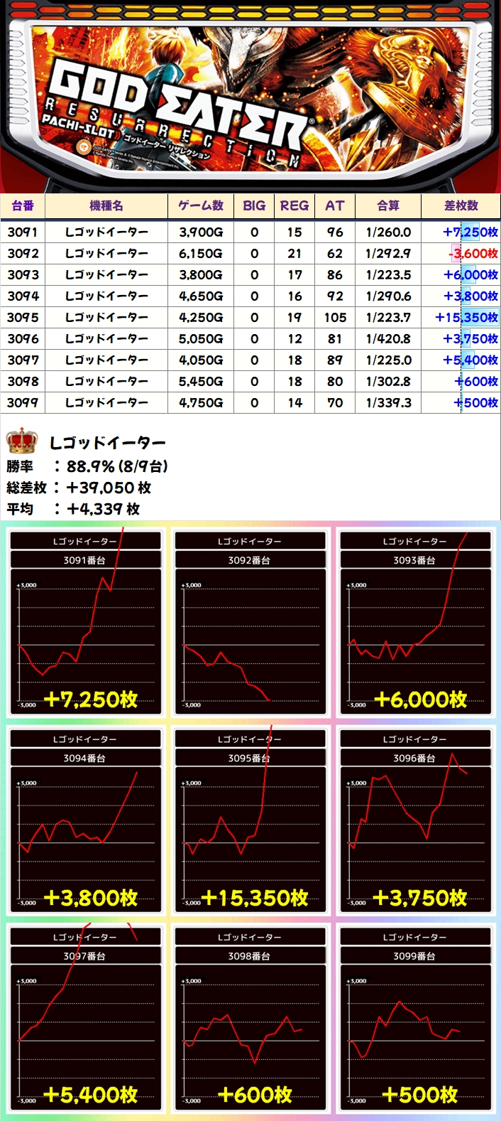 【全台系濃厚】Lゴッドイーター(8/9台+)→平均+4,339枚