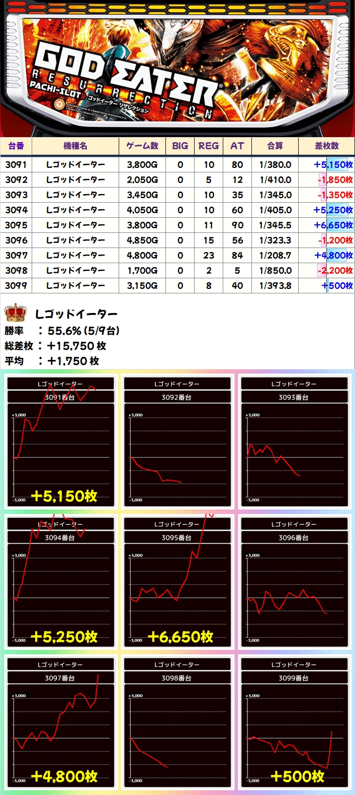 【1/2系濃厚】Lゴッドイーター(5/9台+)→平均+1,750枚