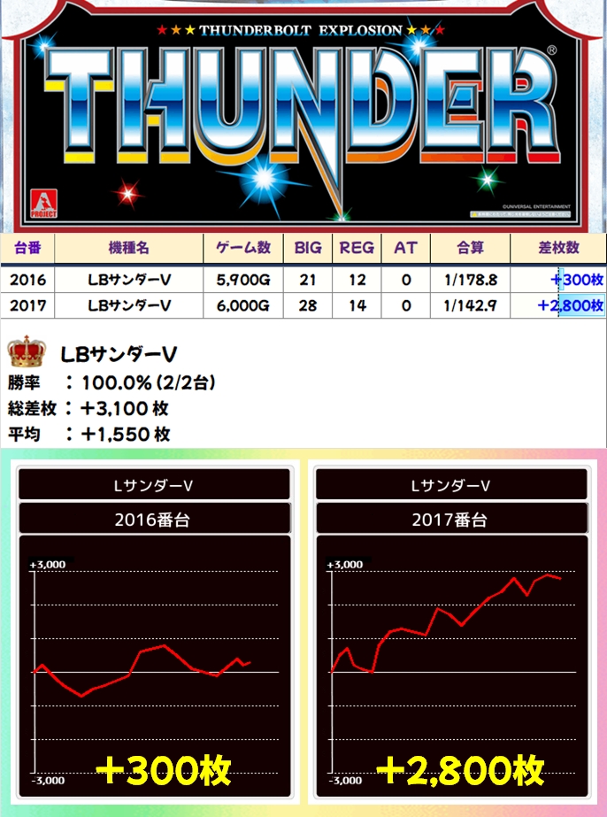 【1/2系濃厚】LBサンダーV(2/2台+)→平均+1,550枚
