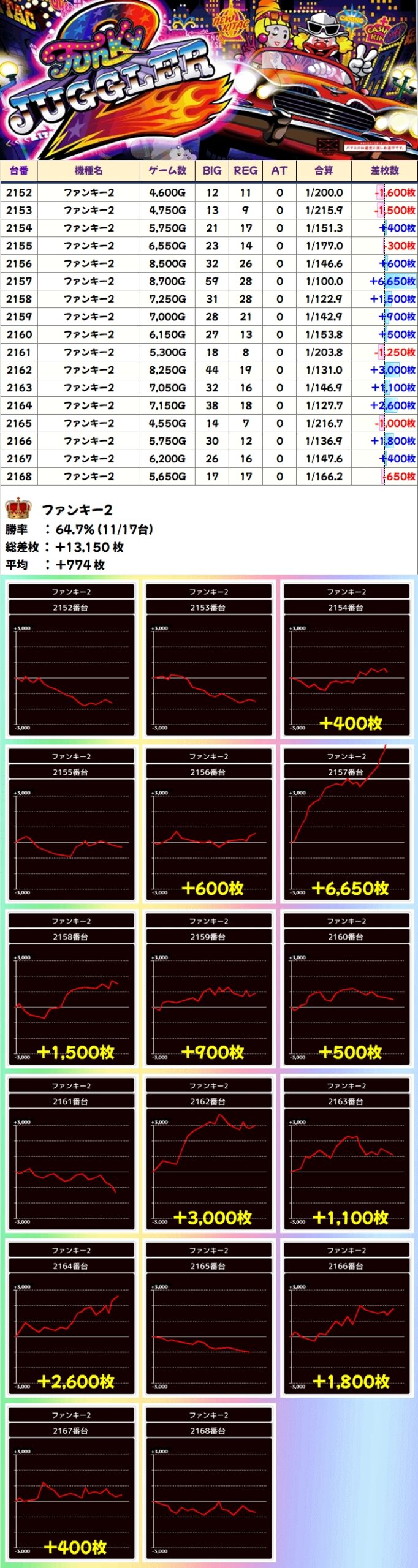 【1/2系濃厚】ファンキー2(11/17台+)→平均+774枚