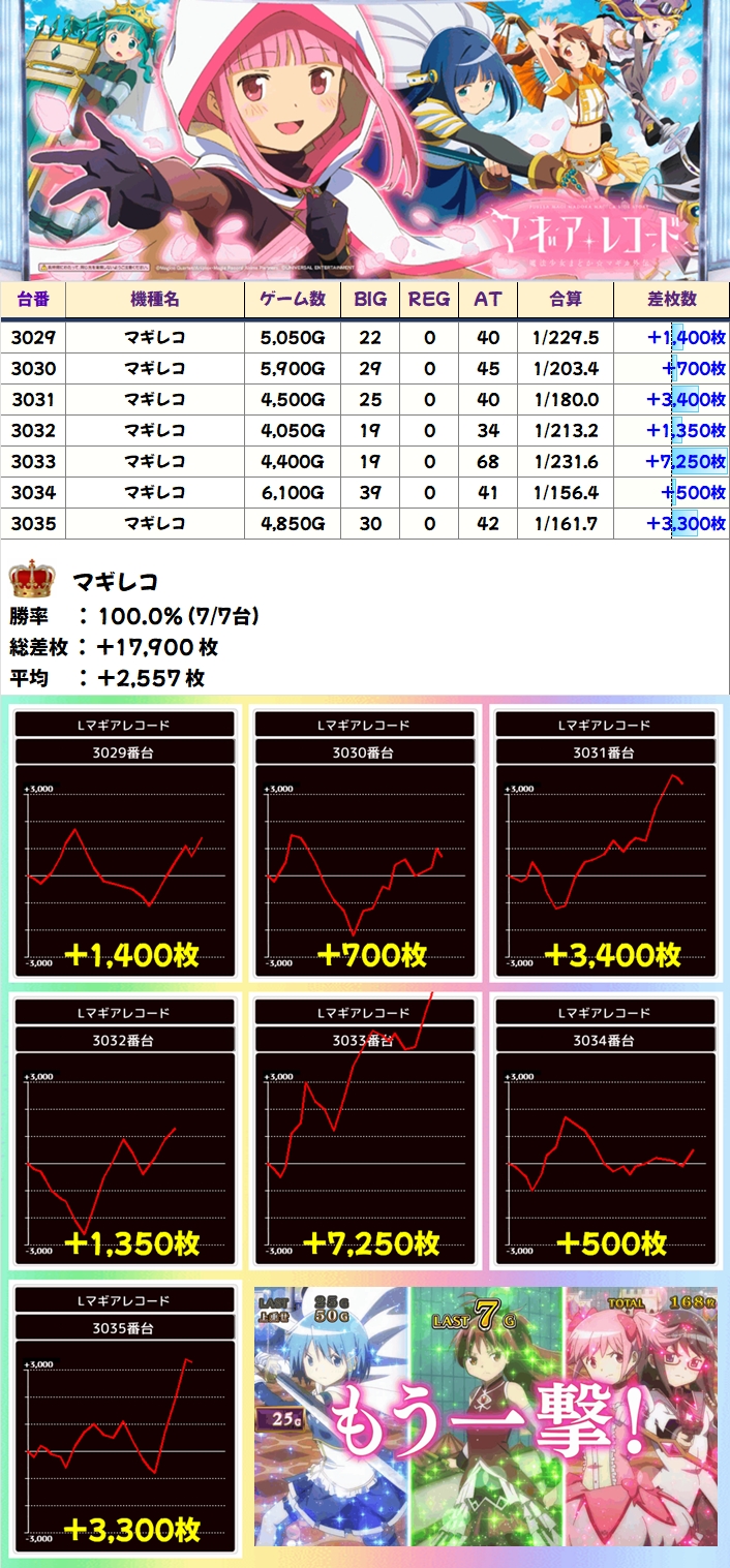 【全台系濃厚】マギレコ(7/7台+)→平均+2,557枚