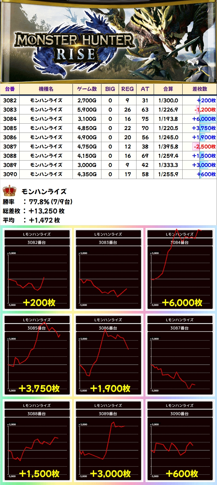 【全台系濃厚】モンハンライズ(7/9台+)→平均+1,472枚