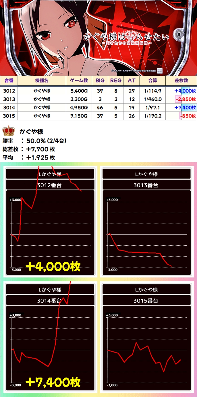【1/2系濃厚】かぐや様(2/4台+)→平均+1,925枚