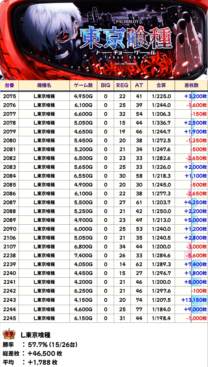 【1/2系濃厚】L東京喰種(15/26台+)→平均+1,788枚