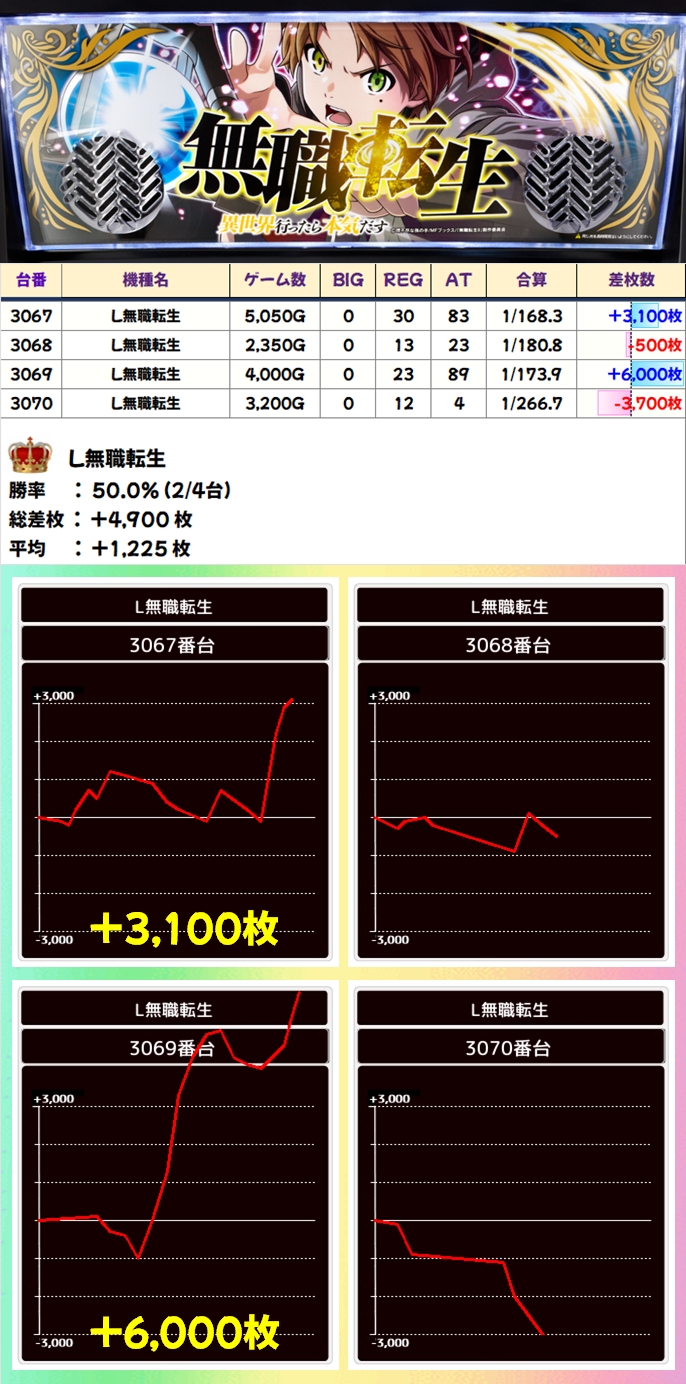 【1/2系濃厚】L無職転生(2/4台+)→平均+1,225枚