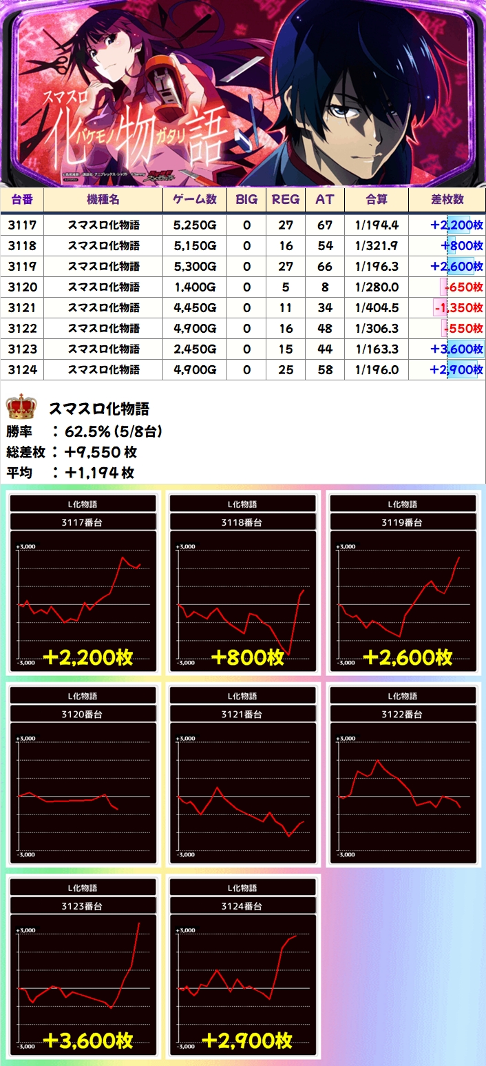 【1/2系濃厚】スマスロ化物語(5/8台+)→平均+1,194枚