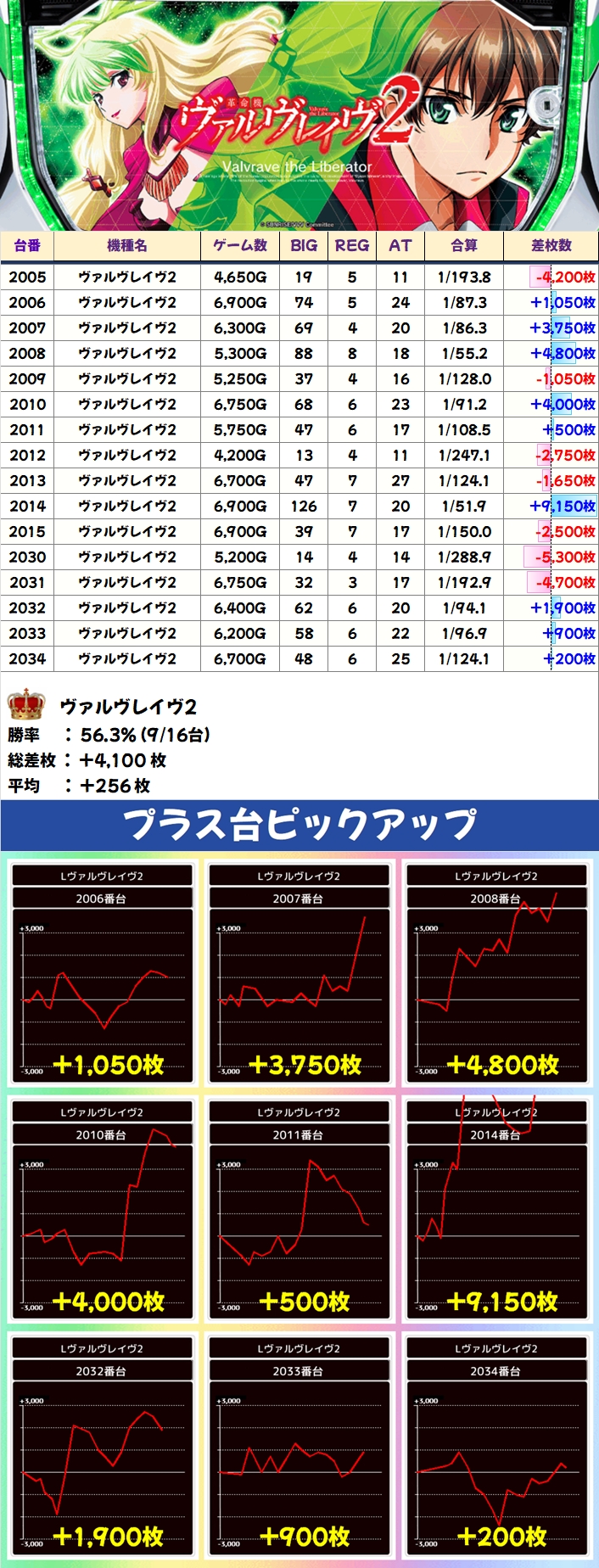 【3台並び】ヴァルヴレイヴ2(2006番台〜2008番台)→平均+3,200枚(3/3台+)