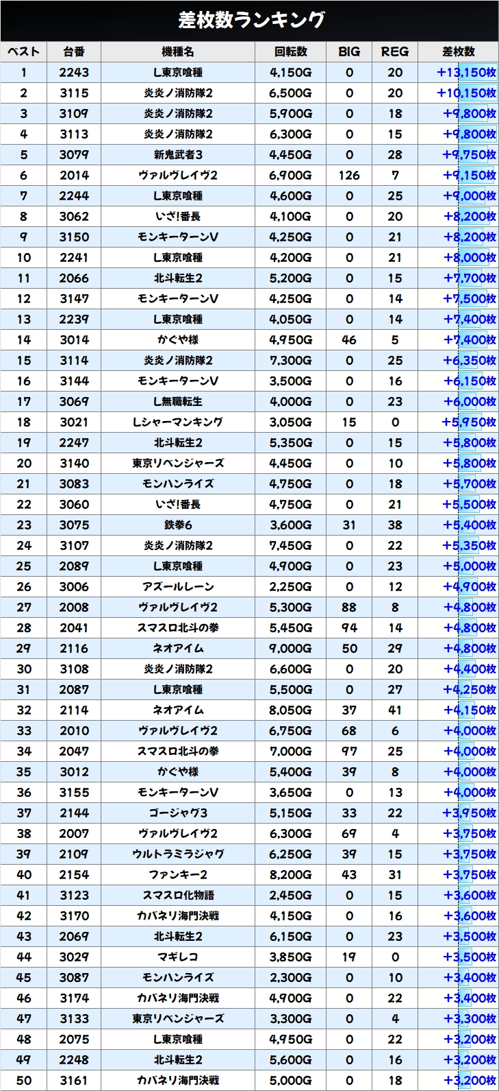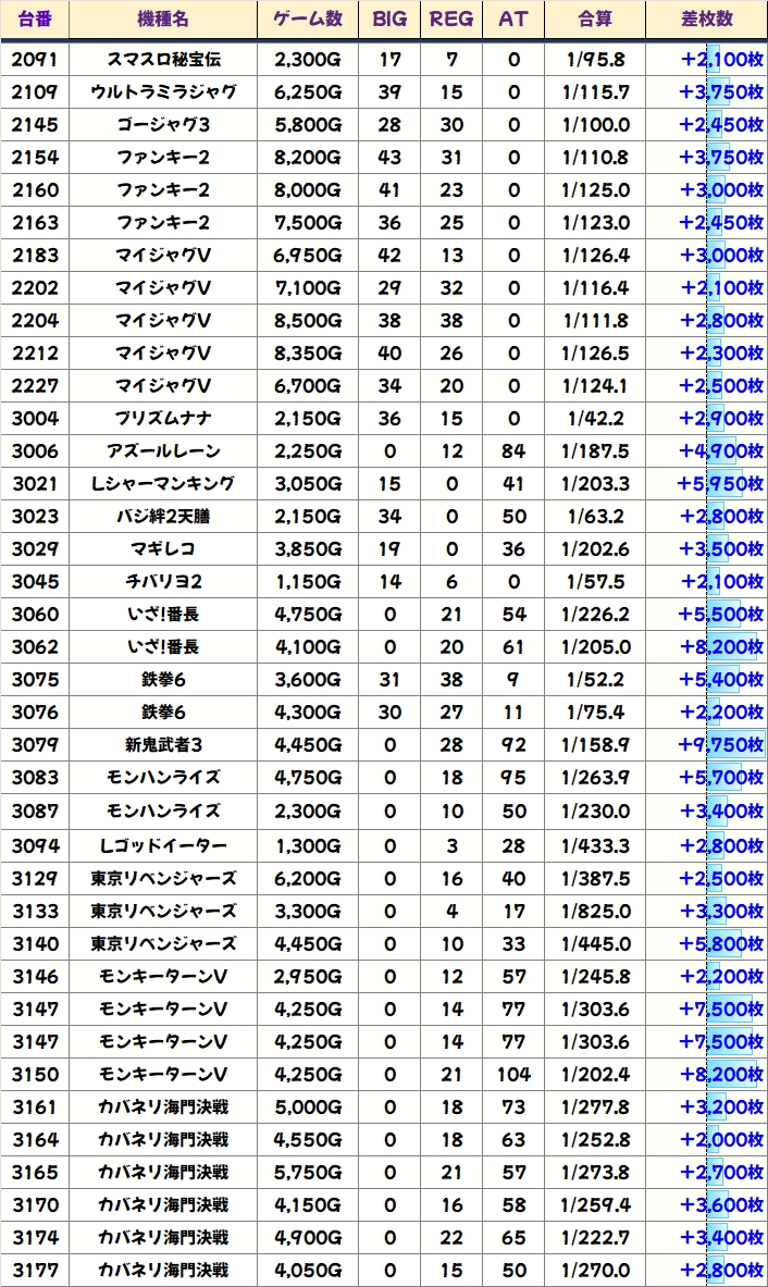差枚数ランキング&島図チェック