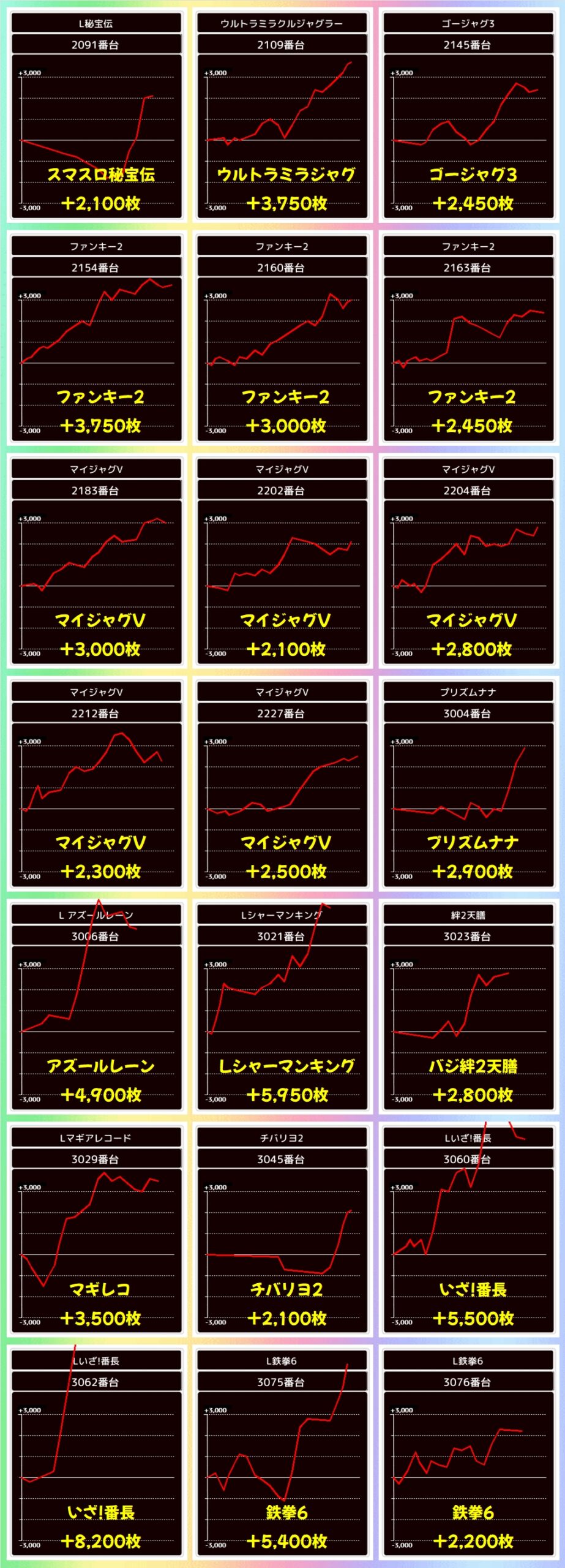 そんな超ド級周年日でしたが、今回もホール全体が高配分になっていた模様で、総差枚+10万枚と大幅プラスに!