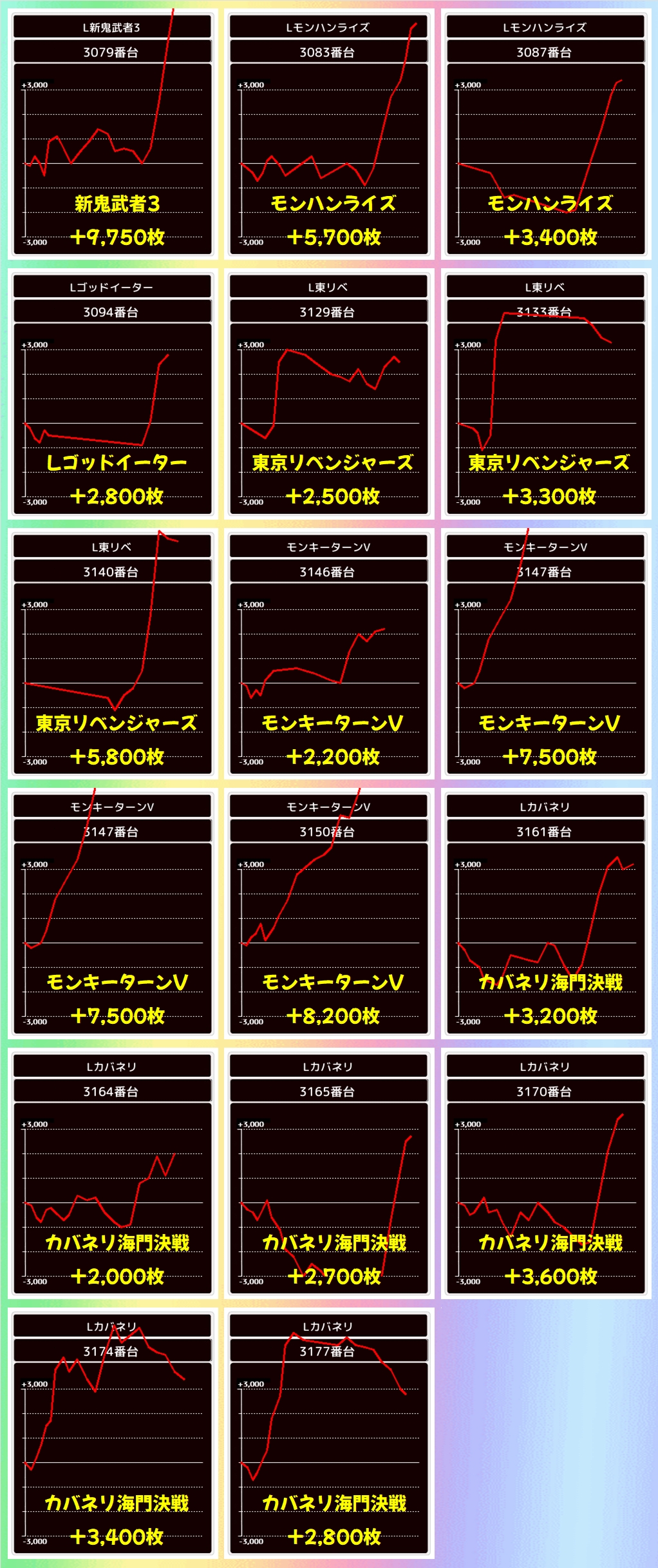 そんな超ド級周年日でしたが、今回もホール全体が高配分になっていた模様で、総差枚+10万枚と大幅プラスに!