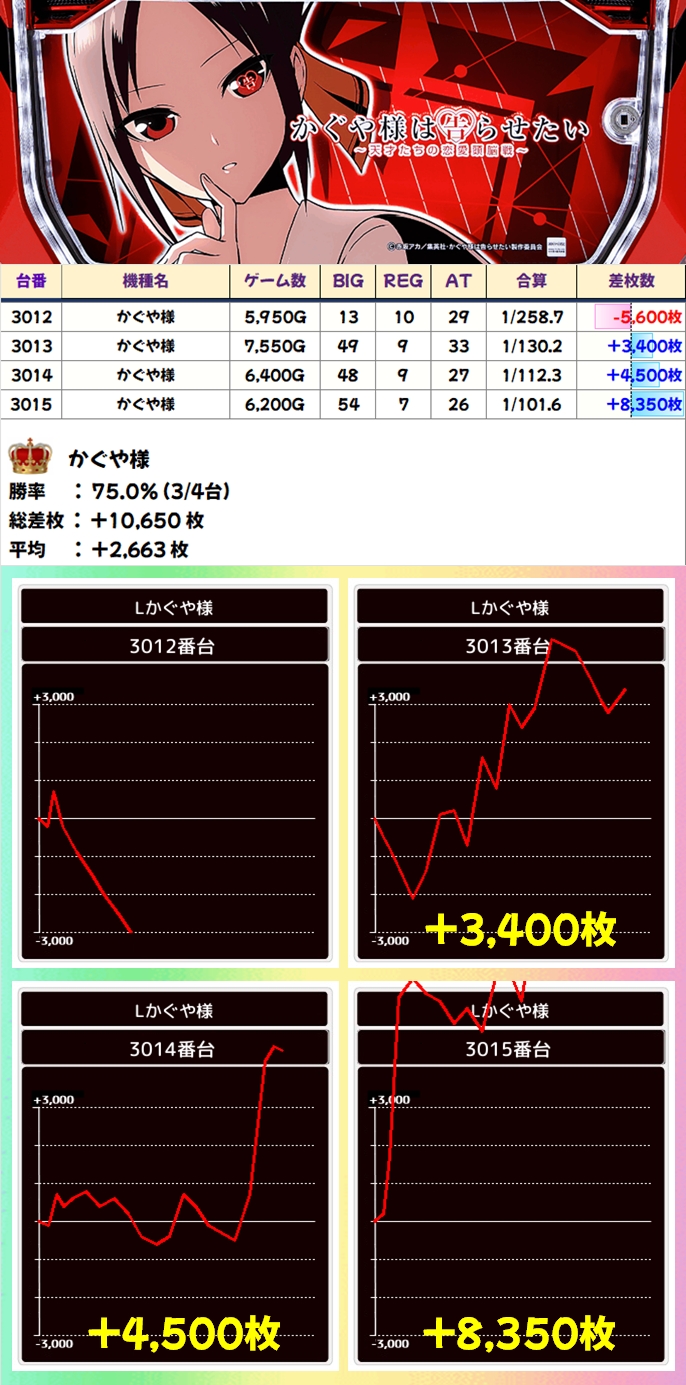 【1/2以上濃厚】かぐや様(3/4台+)→平均+2,663枚