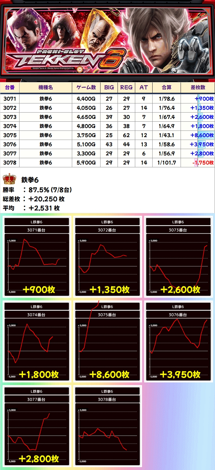 【1/2系濃厚】鉄拳6(7/8台+)→平均+2,531枚
