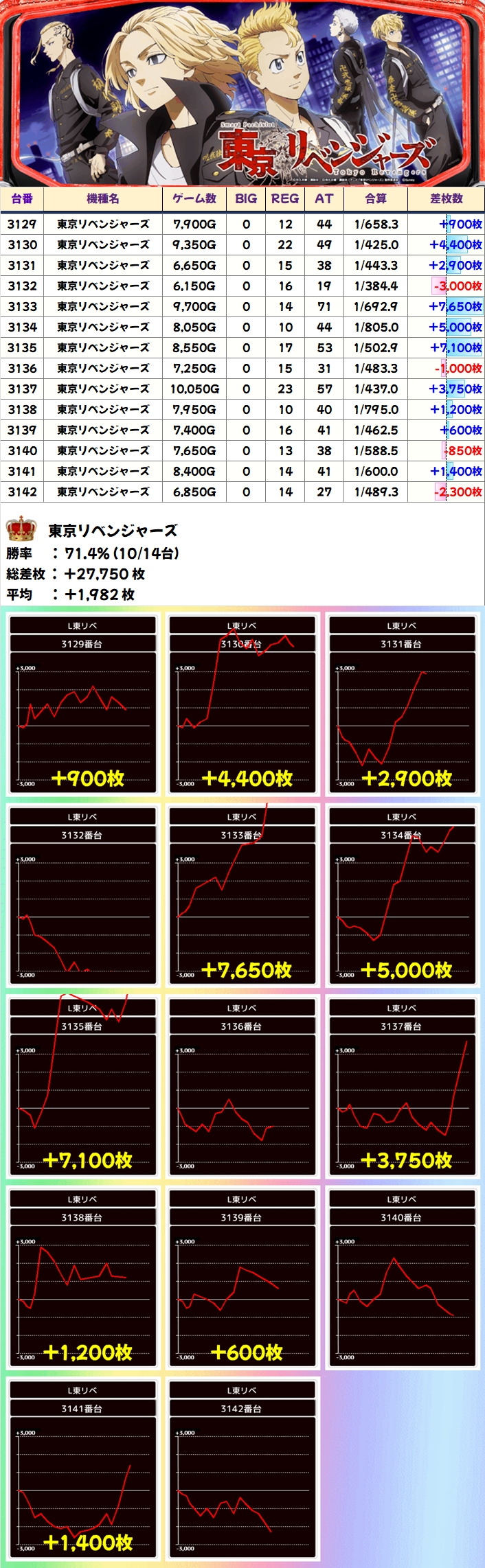 【1/2系濃厚】東京リベンジャーズ(10/14台+)→平均+1,982枚