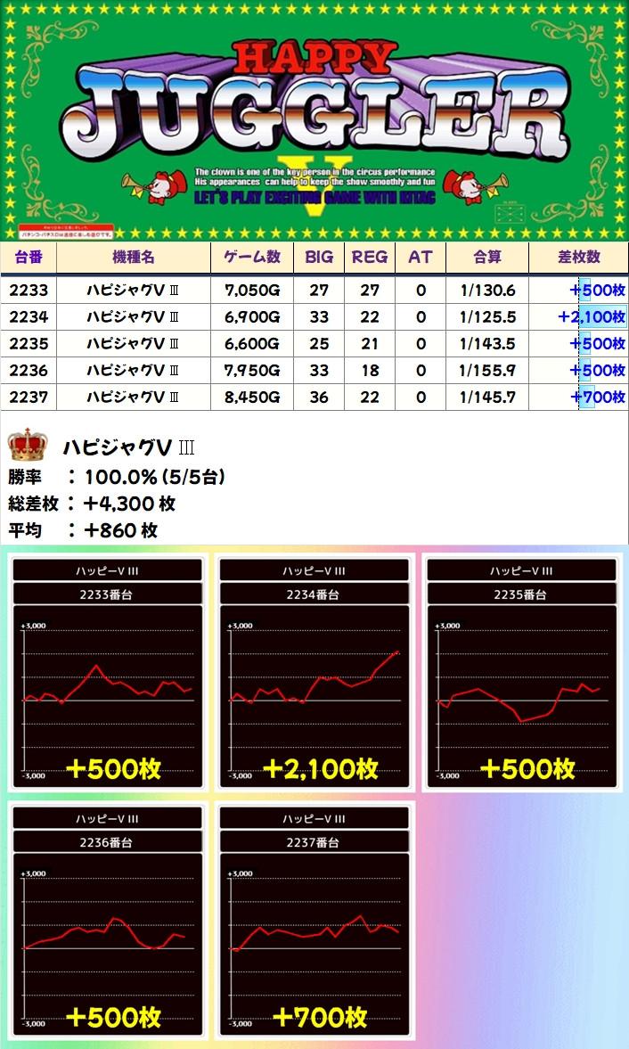 【1/2系濃厚】ハピジャグV Ⅲ(5/5台+)→平均+860枚