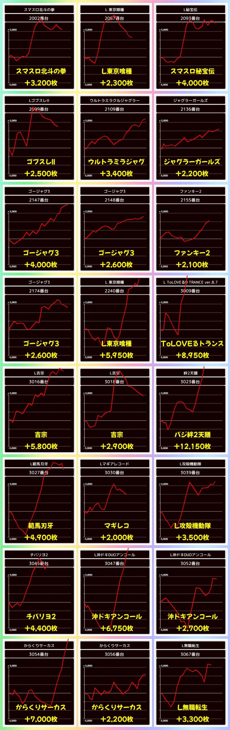 北斗転生2は週間オススメになってから連日大量出玉が出現しており、この日も+8000枚を筆頭に+5000枚超などの優秀台が多数出現!