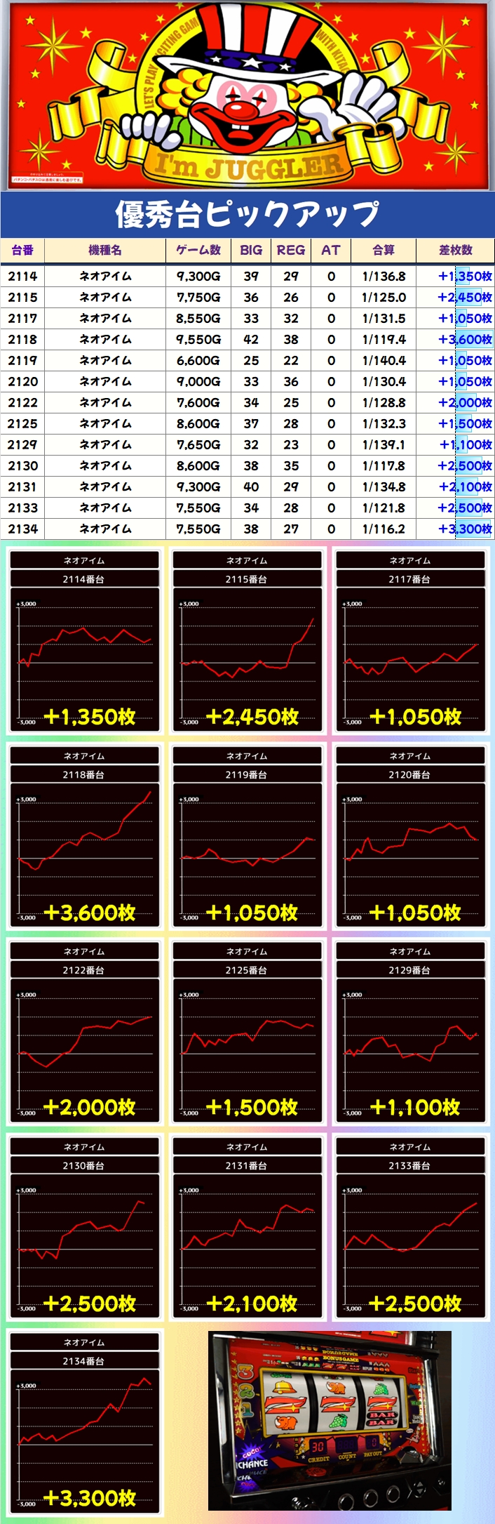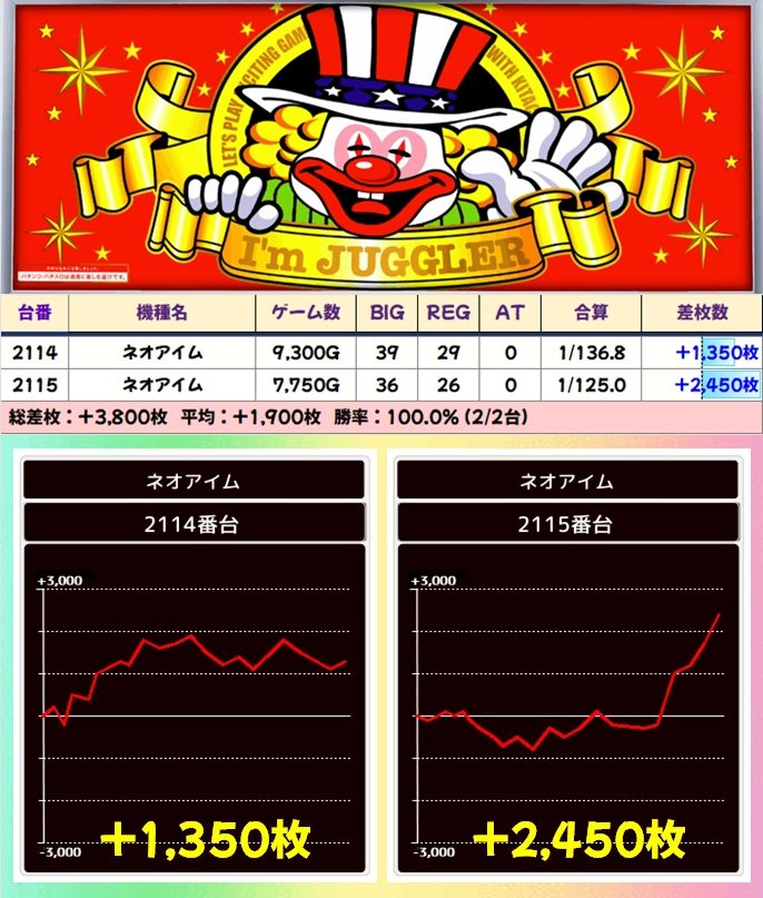 【2台並び】ネオアイム(2114番台〜2115番台)→平均+1,900枚(2/2台+)
