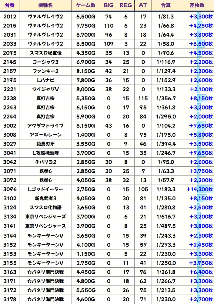 差枚数ランキング&島図チェック