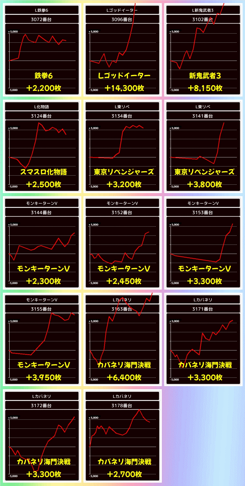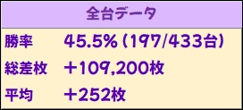 機種全体で平均+3000枚overと圧倒的な出玉を残しており、勝率も85.6%(18/21台)と素晴らしい結果を残していました。