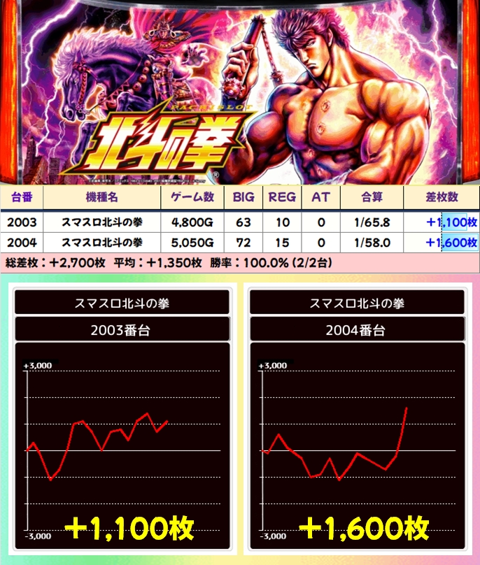 【2台並び】スマスロ北斗の拳(2003番台〜2004番台)→平均+1,350枚(2/2台+)
