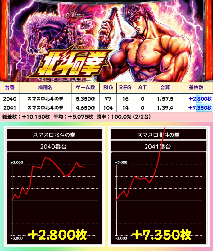 【2台並び】スマスロ北斗の拳(2040番台〜2041番台)→平均+5,075枚(2/2台+)