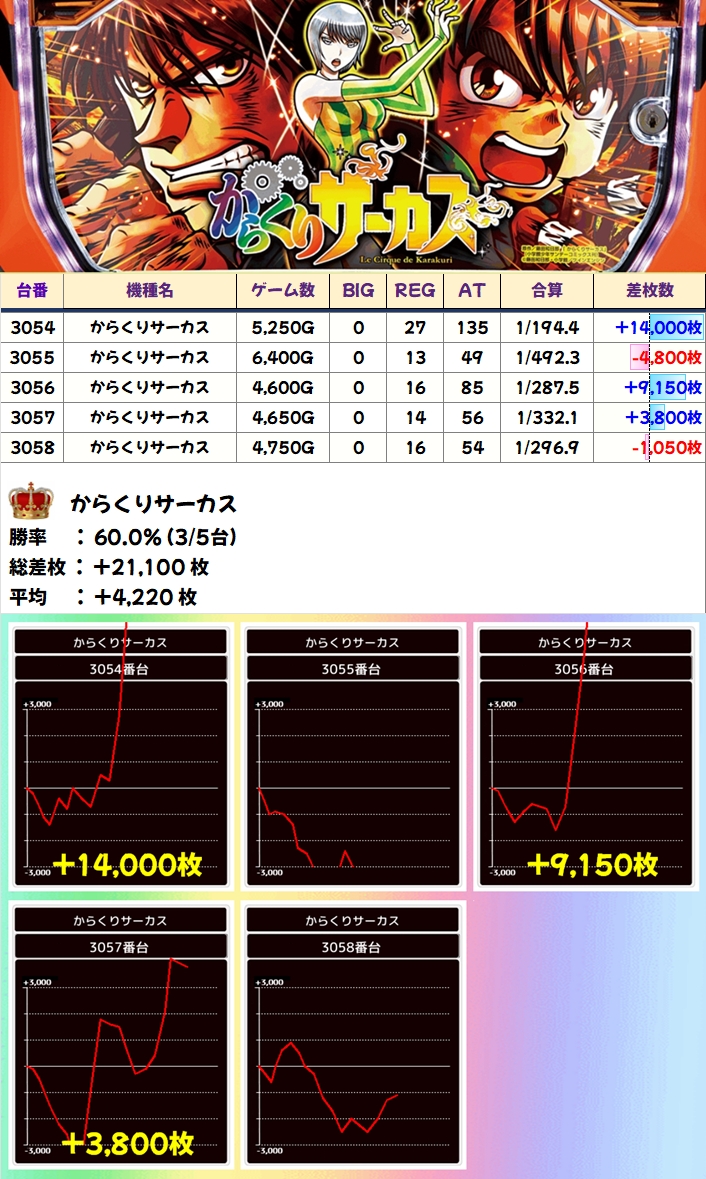 【1/2系濃厚】からくりサーカス(3/5台+)→平均+4,220枚