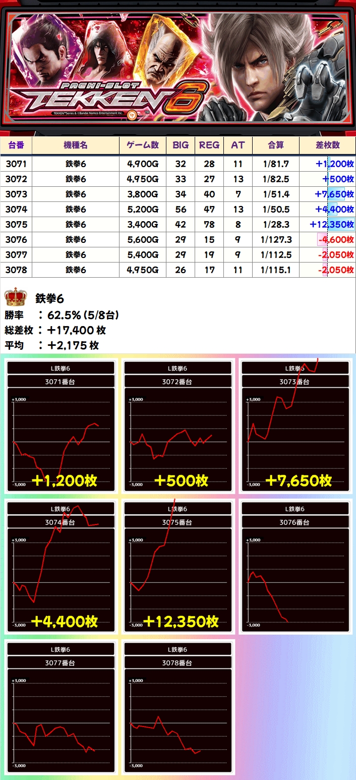 【1/2系濃厚】鉄拳6(5/8台+)→平均+2,175枚