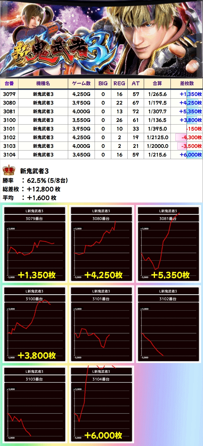 【1/2系濃厚】新鬼武者3(5/8台+)→平均+1,600枚