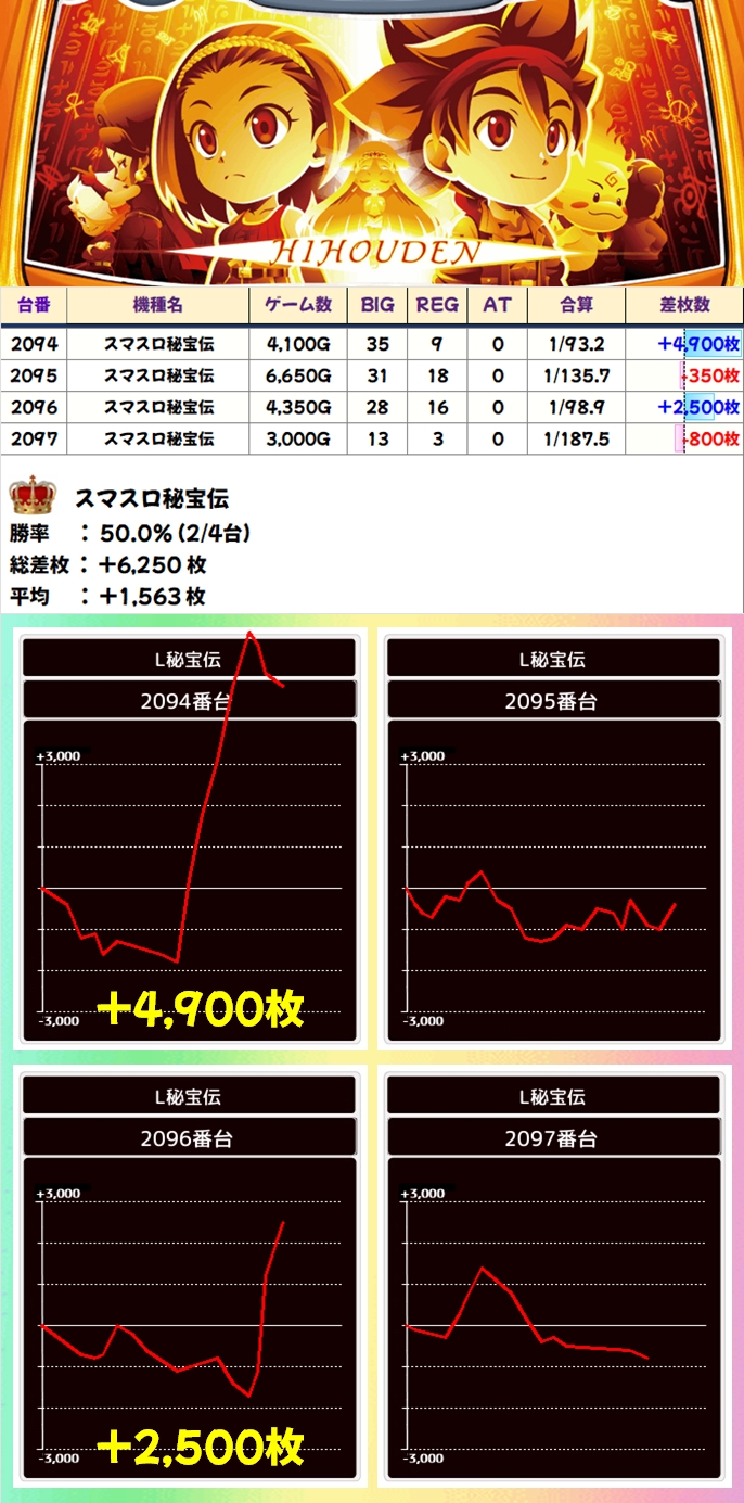【1/2系濃厚】スマスロ秘宝伝(2/4台+)→平均+1,563枚