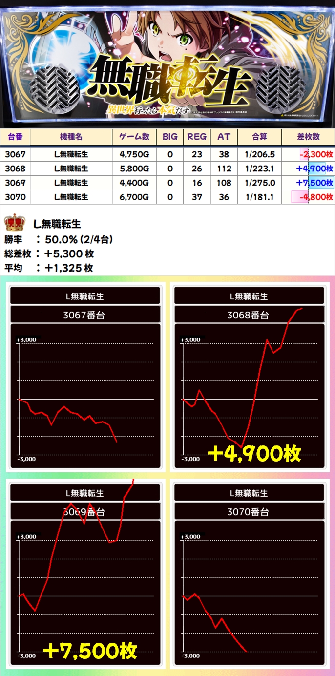 【1/2系濃厚】L無職転生(2/4台+)→平均+1,325枚