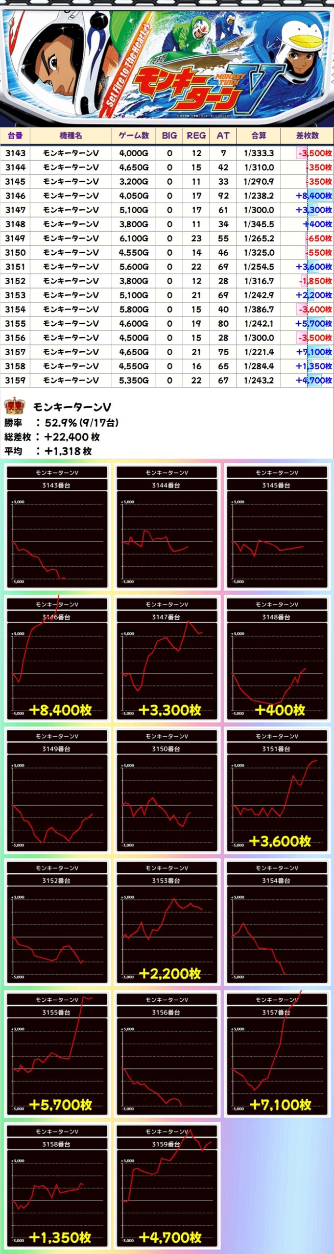 【1/2系濃厚】モンキーターンV(9/17台+)→平均+1,318枚