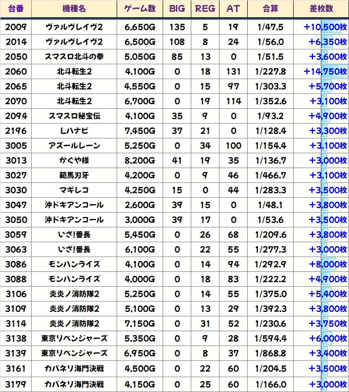 +5000枚overの大量出玉も多数確認でき、ヴァルヴレイヴ2と北斗転生2からは万枚オーバー台が飛び出していました!