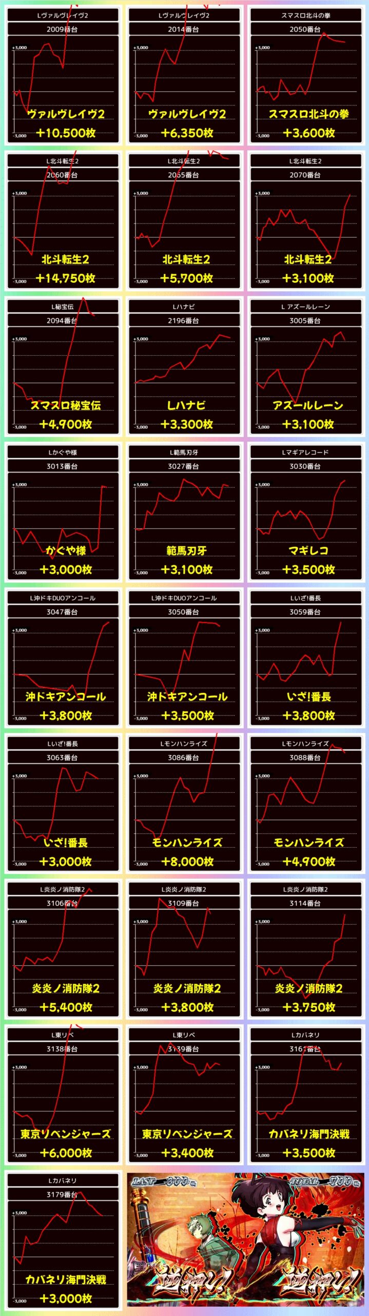そんな超ド級告知ですが、今回もお宝台が多数投入されていた模様で、ホール全体で大幅プラスを記録!