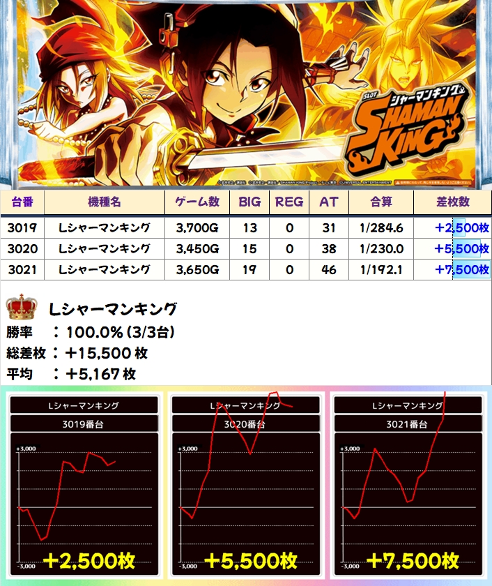 【全台系濃厚】Lシャーマンキング(3/3台+)→平均+5,167枚