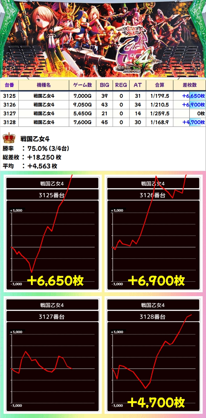 【全台系濃厚】戦国乙女4(3/4台+)→平均+4,563枚