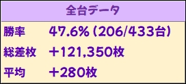 総差枚+12万枚overと結果を残しており、超ド級告知の安定感を見せつける結果になっていました。