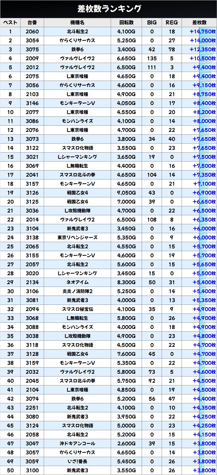 差枚数ランキング&島図チェック