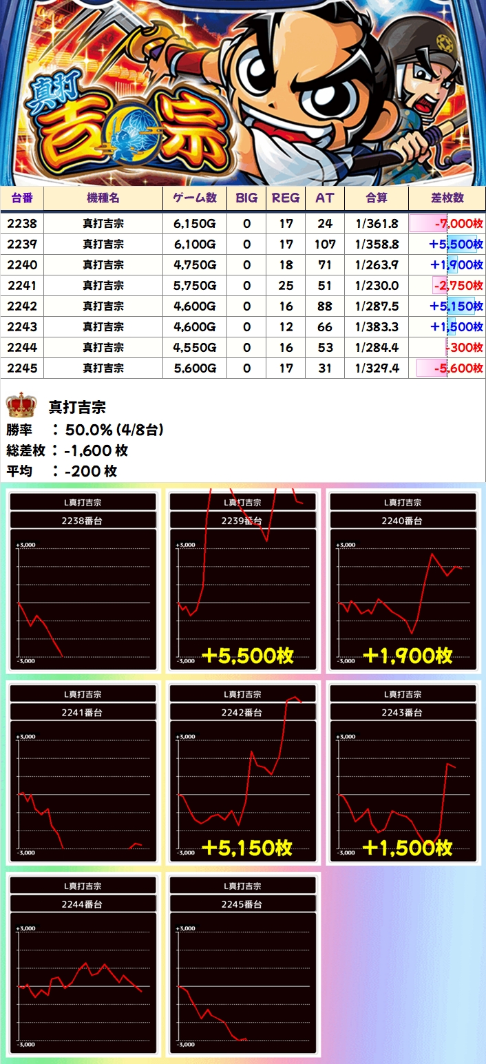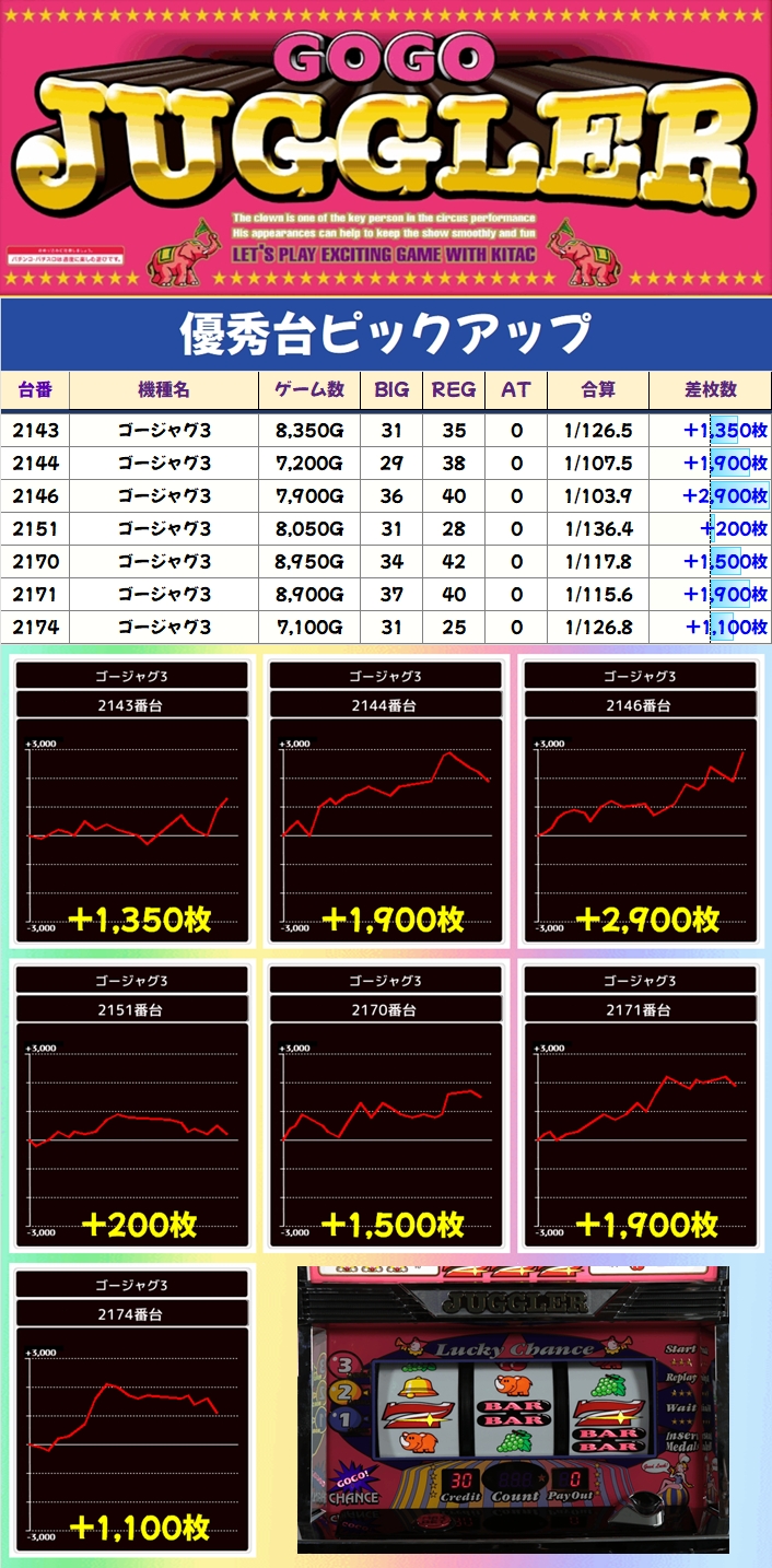 この日は仕掛けで取り上げた機種以外からも優秀台を多数確認!