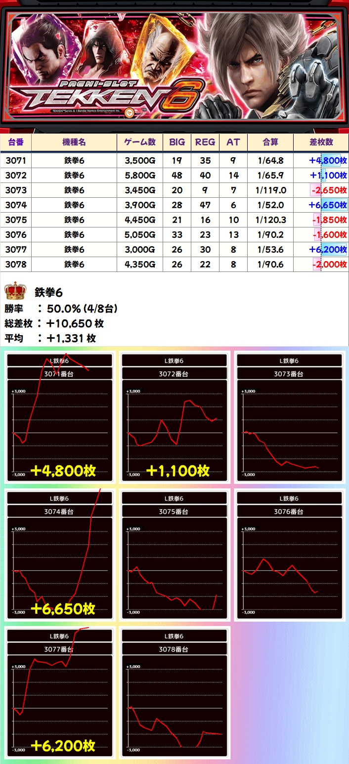 【1/2系濃厚】鉄拳6(4/8台+)→平均+1,331枚