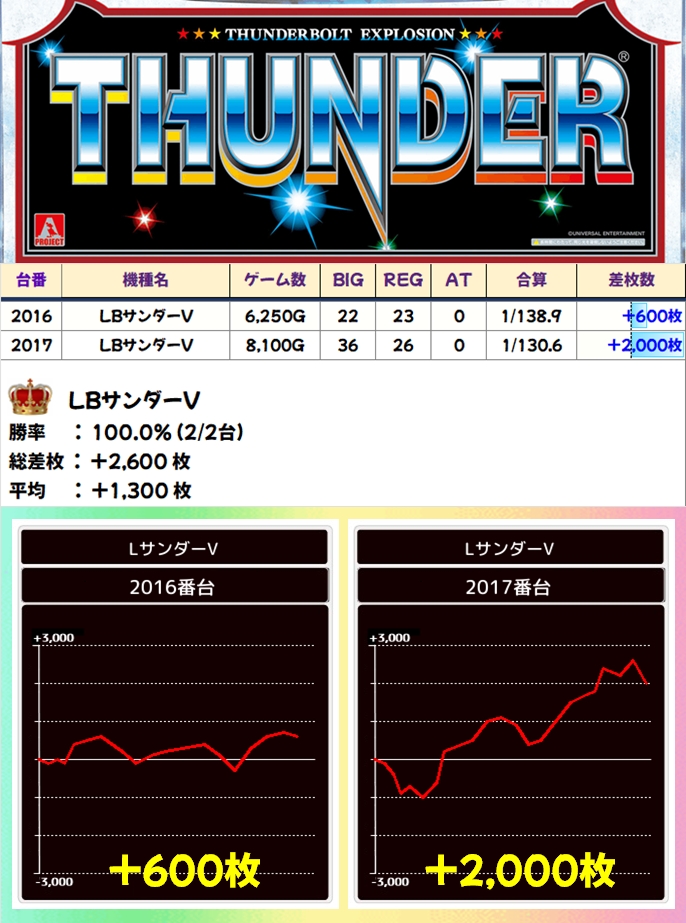 【1/2系濃厚】LBサンダーV(2/2台+)→平均+1,300枚