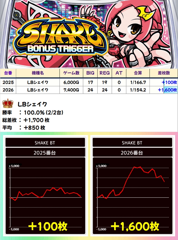 【1/2系濃厚】LBシェイク(2/2台+)→平均+850枚