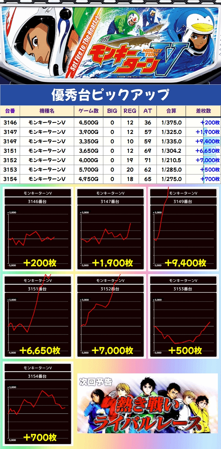 【高配分】モンキーターンV(7/17台+)→平均+518枚
