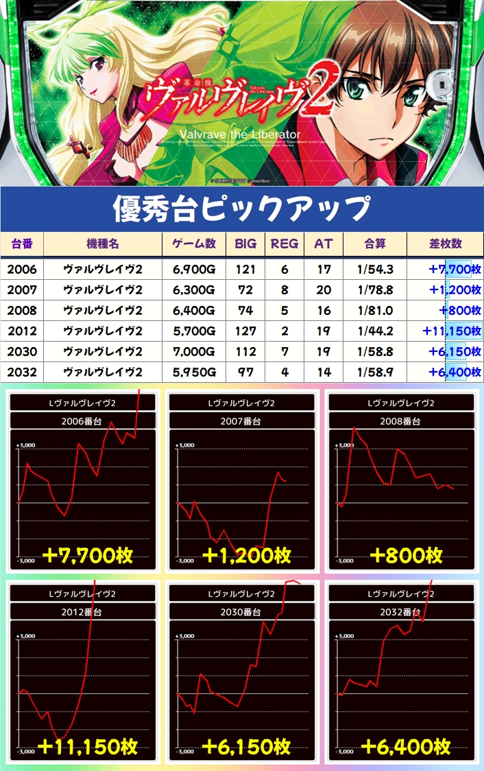 【3台並び】ヴァルヴレイヴ2(2006番台〜2008番台)→平均+3,233枚(3/3台+)