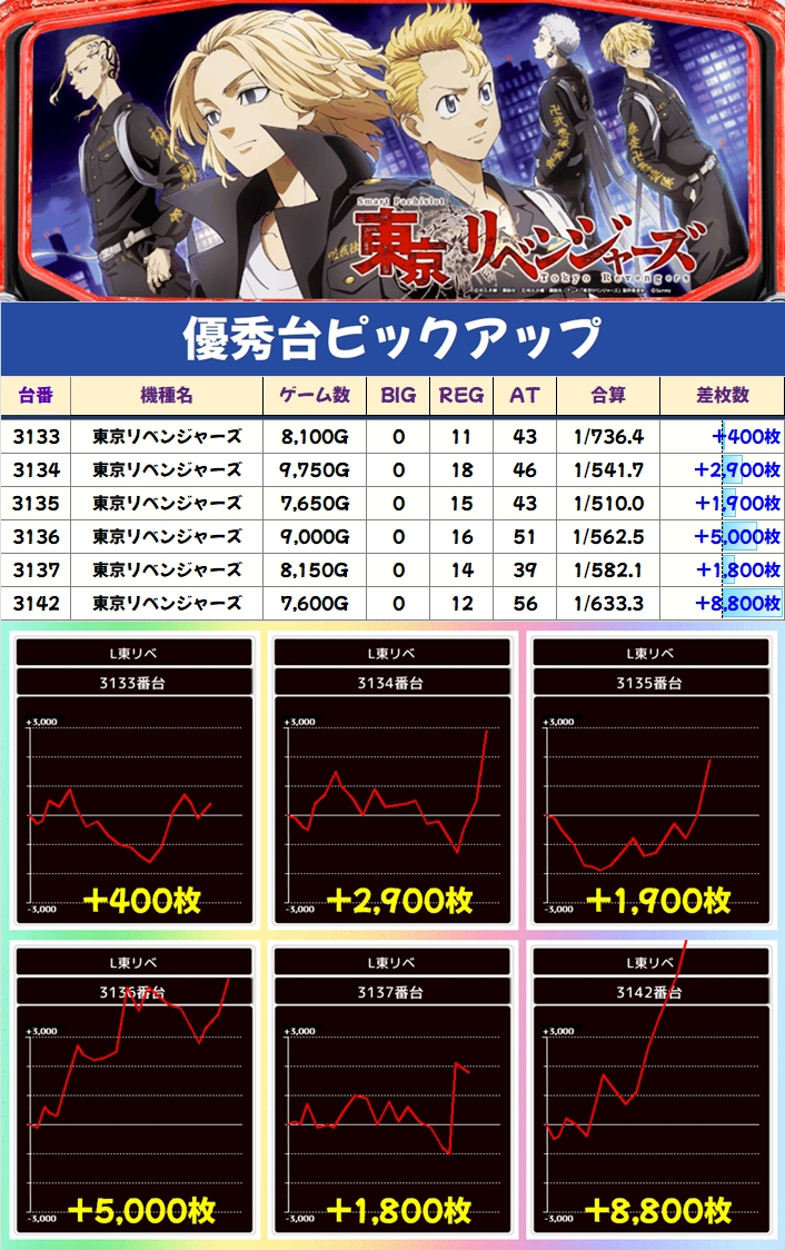 【高配分】東京リベンジャーズ(6/14台+)→平均+296枚