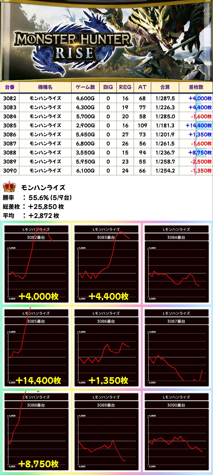 【全台系濃厚】モンハンライズ(5/9台+)→平均+2,872枚