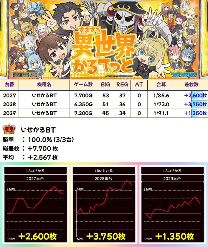 【全台系濃厚】いせかるBT(3/3台+)→平均+2,567枚