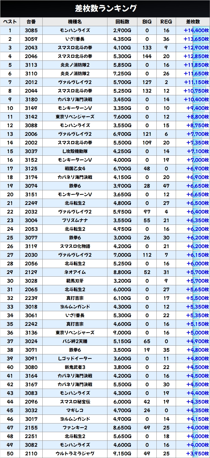 そんな、多数の仕掛けに期待できる日曜日でしたが、今回もホール全体でプラス差枚を記録!!