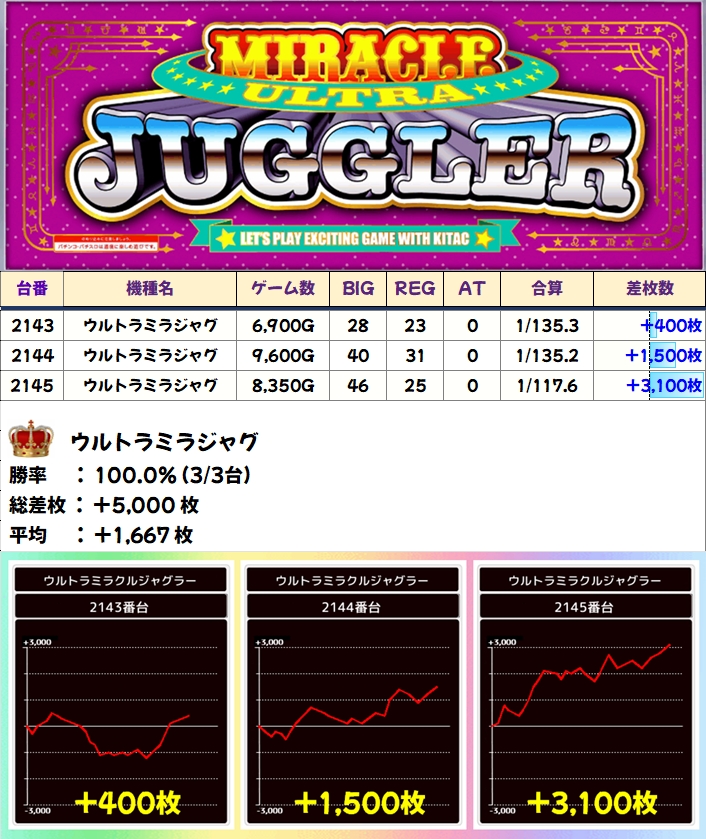 ウルトラミラジャグ(3/3台+)→平均+1,667枚