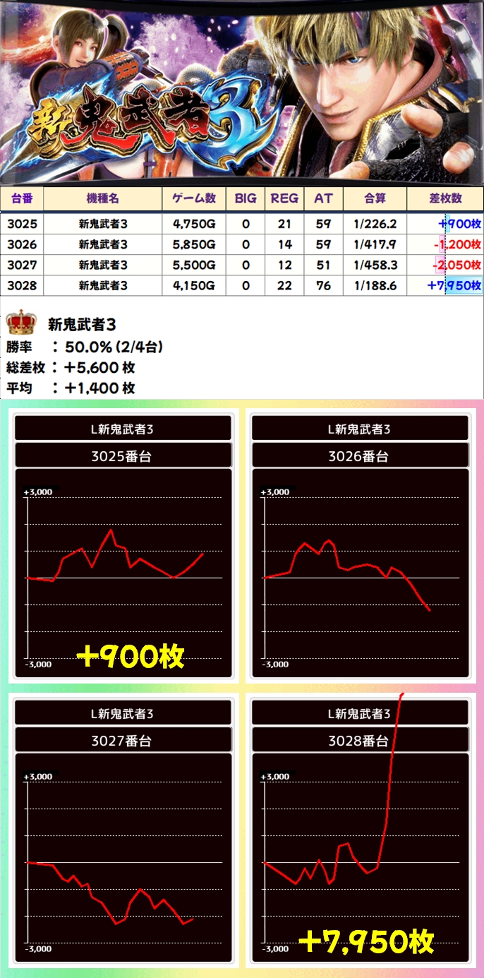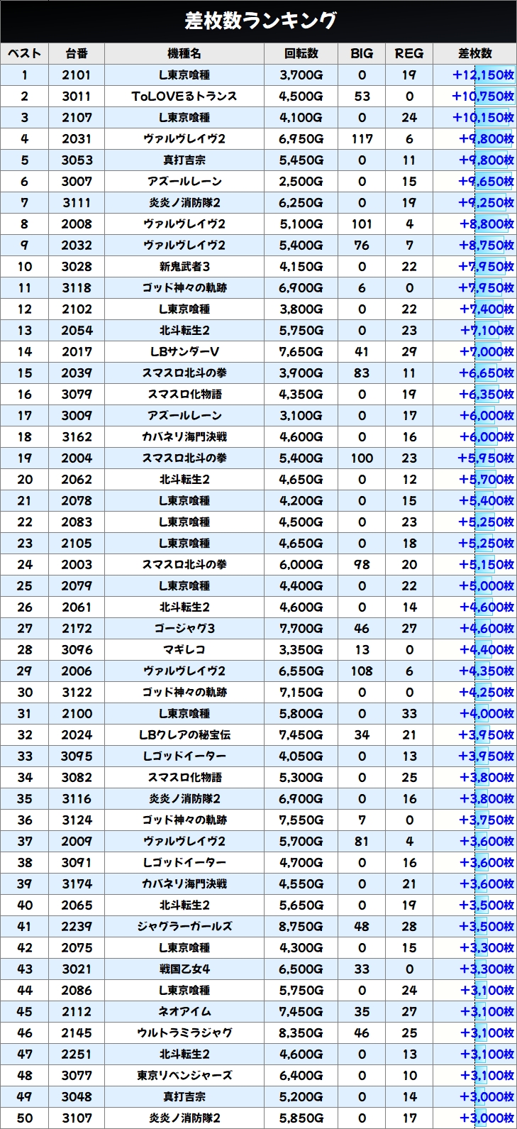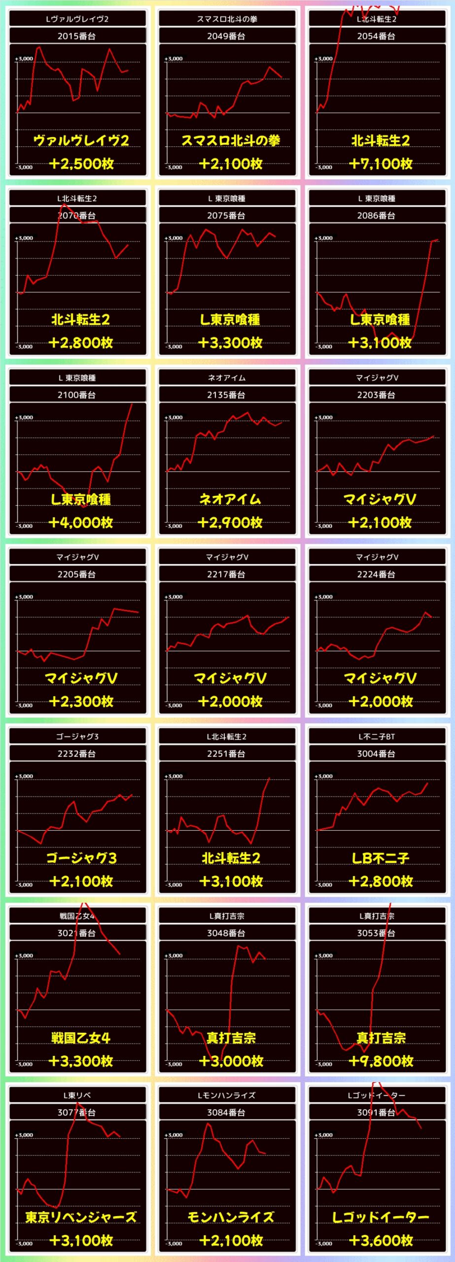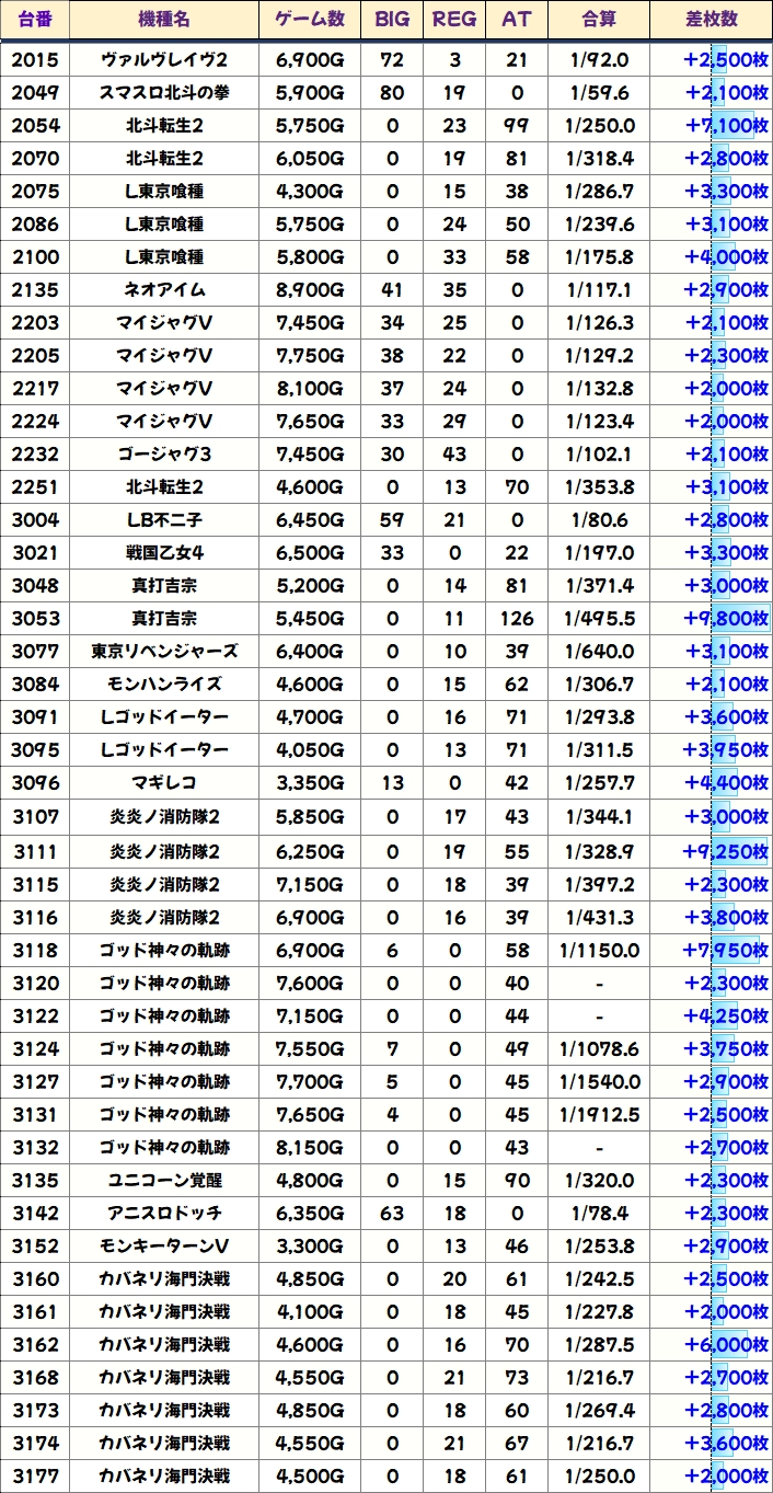 上記の機種の中には全台プラスの台も確認できたため、全台系の機種もあったかもしれませんね。